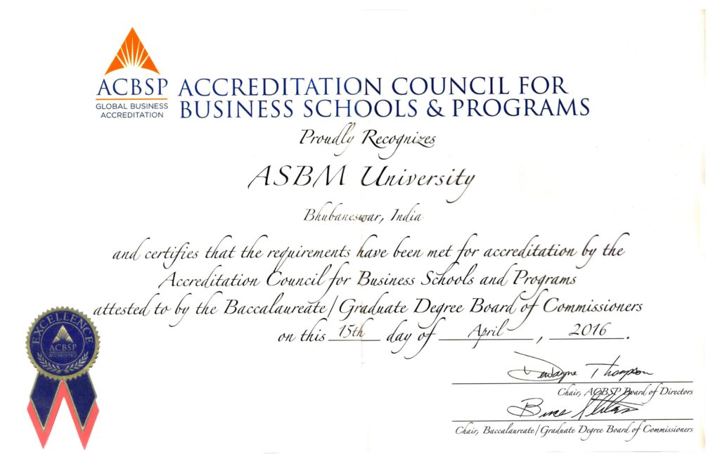 ASBM University has been recognised and accredited by the Accreditation Council for Business Schools and Programs (ACBSP), USA.